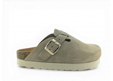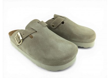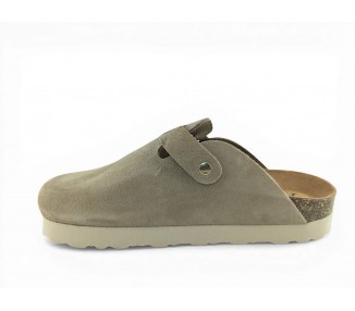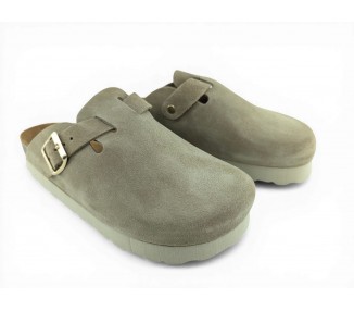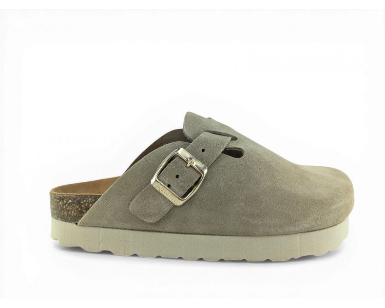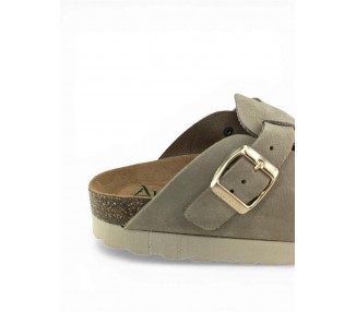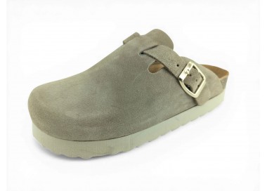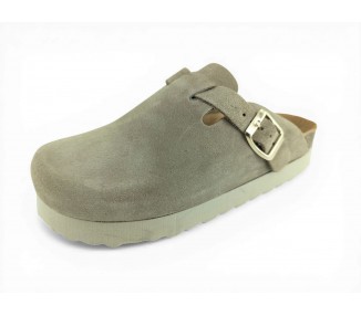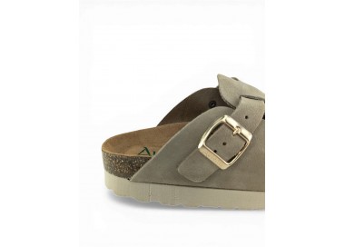 Sandalia Bio tipo zueco con plataforma para mujer y joven, fabricada en piel serraje de máxima calidad con toda la pala cubierta y cierre de hebilla ajustable en el empeine. Disfruta de comodidad extra con la planta Bio de piel serraje acolchada de gran confort y transpirable. Podrás usarlas todos los días y también para casa. Fabricado por la marca Autenti.