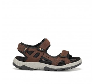 Sandalia de hombre fabricada enteramente en piel, formada por tiras de piel perforada. Tiene la puntera y talón cerrado con cierre de hebilla lateral para facilitar el calce del pie. Fabricado en España.