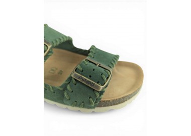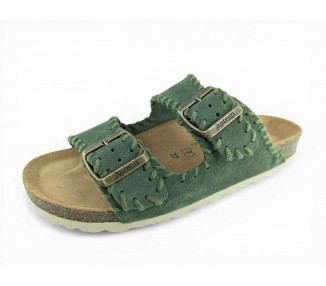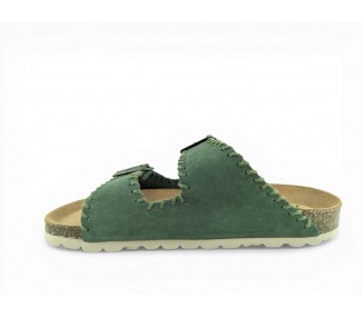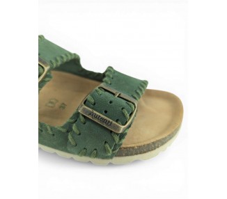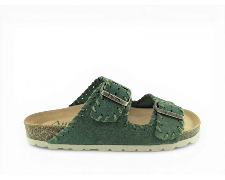 Sandalia Bio para mujer y joven, formada por dos tiras de piel serraje en la pala con cierre de hebillas ajustables para mejor ajuste al pie. Detalle de pespunteado al tono en todo el perímetro. Planta Bio anatómica en piel serraje acolchada de gran confort y transpirable. Podrás usarlas para todos los días y también para casa. Fabricado por la marca Autenti.