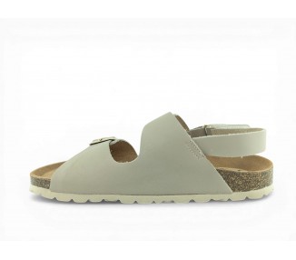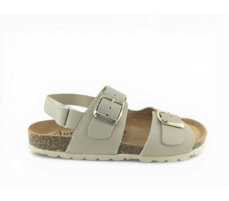 Sandalia Bio para mujer y joven, formada por dos tiras de piel lisa en la pala con hebillas para mejor ajuste al pie y tira trasera con cierre de velcro. Planta Bio anatómica en piel serraje acolchada de gran confort y transpirable. Podrás usarlas para todos los días y también para casa. Fabricado por la marca Autenti.
