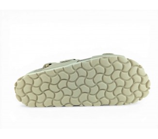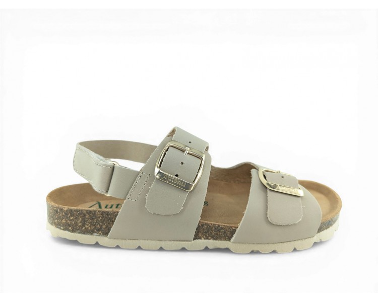 Sandalia Bio para mujer y joven, formada por dos tiras de piel lisa en la pala con hebillas para mejor ajuste al pie y tira trasera con cierre de velcro. Planta Bio anatómica en piel serraje acolchada de gran confort y transpirable. Podrás usarlas para todos los días y también para casa. Fabricado por la marca Autenti.
