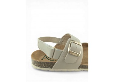 Sandalia Bio para mujer y joven fabricada enteramente en piel, formada por una tira sobre el empine con cierre de hebilla ajustable y otra tira con un corte para introducir el dedo. Planta Bio anatómica en piel serraje acolchado de gran confort y transpirable. Podrás usarlas todos los días y también para casa. Fabricado por la marca Autenti.