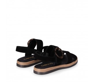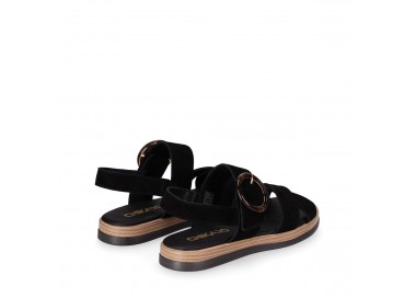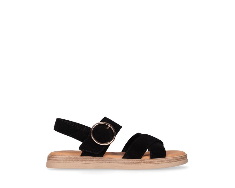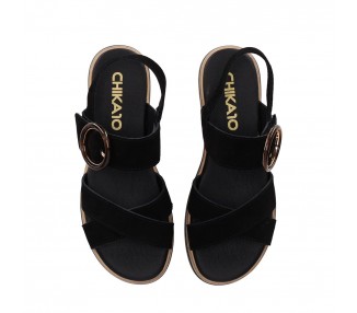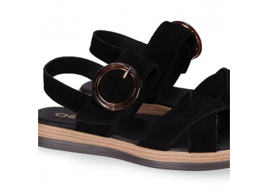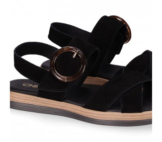 Sandalia para mujer y joven, realizada piel serraje de primera calidad. Pala ancha cruzada con forro interior. Planta de gel de gran comodidad. Cierre mediante velcro para un perfecto y rápido ajuste al pie, aunque parece que sea mediante una bonita hebilla. Piso bicolor. Fabricado por la marca Chika10.