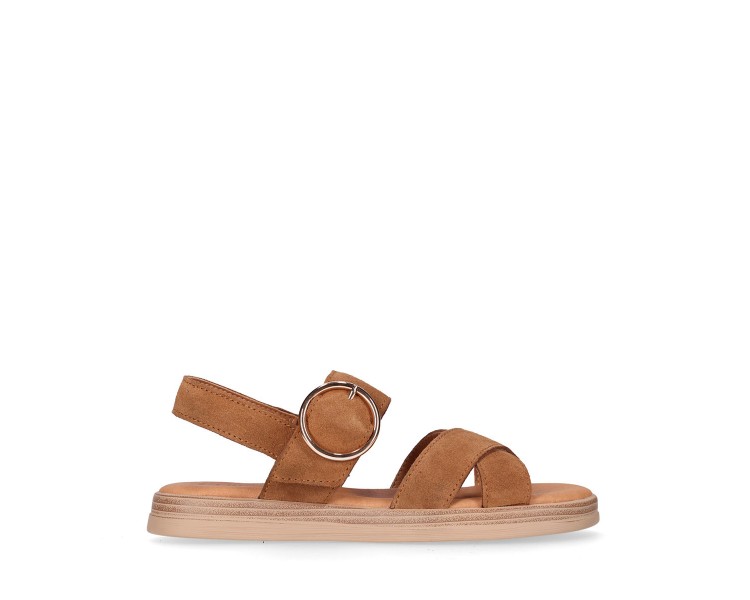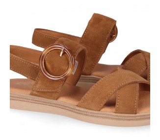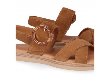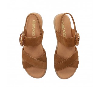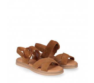 Sandalia para mujer y joven, realizada piel serraje de primera calidad. Pala ancha cruzada con forro interior. Planta de gel de gran comodidad. Cierre mediante velcro para un perfecto y rápido ajuste al pie, aunque parece que sea mediante una bonita hebilla. Piso bicolor. Fabricado por la marca Chika10.