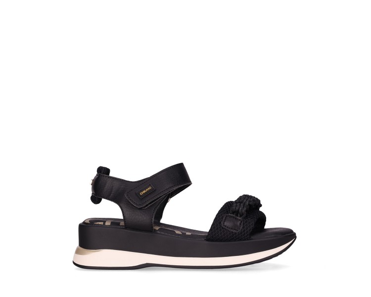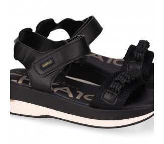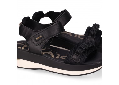 Sandalia de tipo deportiva con plataforma para mujer y joven. Diseño de tira ajustable con cierre de velcro para facilitar el calce. Plantilla de foam que amortigua muchísimo la pisada. Suela deportiva de dos colores y gran comodidad. Detalle de cordón tranzado en la pala a modo de adorno. Fabricado por la marca Chika10