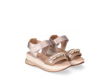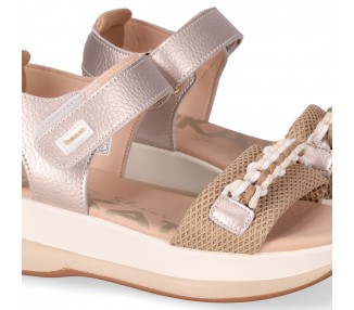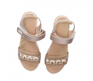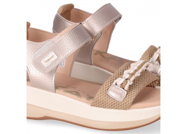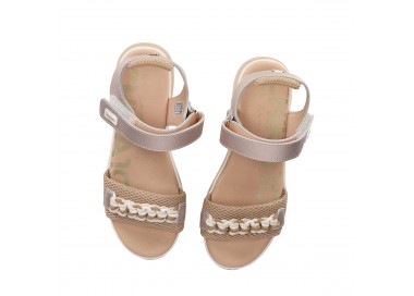 Sandalia de tipo deportiva con plataforma para mujer y joven. Diseño de tira ajustable con cierre de velcro para facilitar el calce. Plantilla de foam que amortigua muchísimo la pisada. Suela deportiva de dos colores y gran comodidad. Detalle de cordón tranzado en la pala a modo de adorno. Fabricado por la marca Chika10