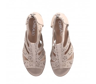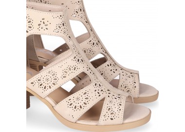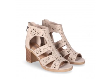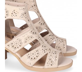 Sandalia abotinada para mujer y joven, realizada en material sintético vegano con diseño de perforaciones al laser. Cierre mediante cremallera trasera para facilitar el calce, forro textil y plantilla acolchada para una mayor comodidad. Tacón cuadrado de gran estabilidad. Modelo cómodo y elegante, muy versátil para esta temporada. Hecha por la marca Chika10.