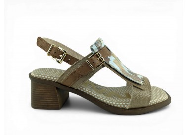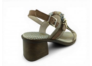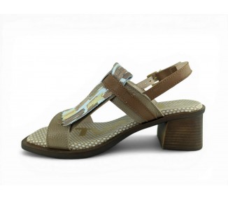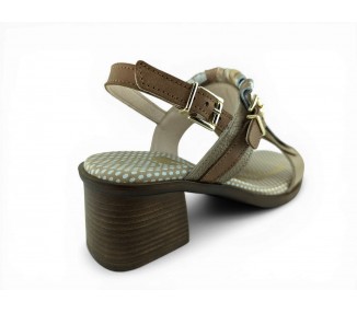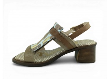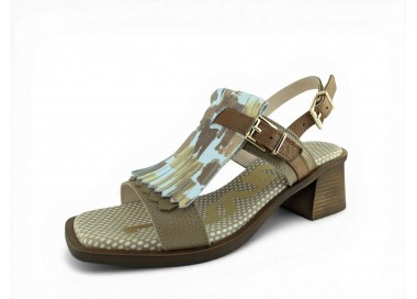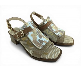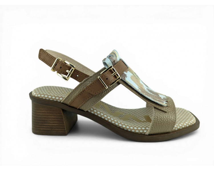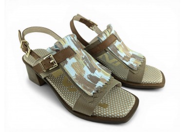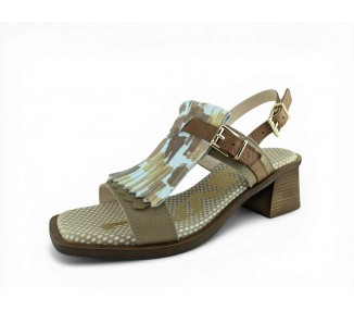 Bonita sandalia para mujer y joven con tacón cómodo realizada en piel bombeada de primera calidad. Cierre con una bonita hebilla en el tobillo para un perfecto ajuste al pie. Detalle de hebilla ajustable en el empeine y flecos decorativos en pala. Planta de gel de gran comodidad. Hecho por la marca Nival.