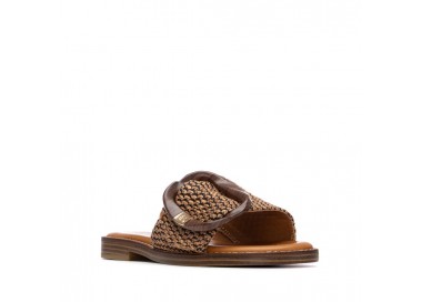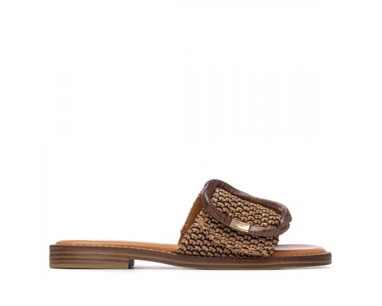 Sandalia de mujer y joven, marca Carmela. Fabricada en material tipo rafia. Diseño con adorno frontal para aportar mayor elegancia. Combinará con todos tus looks de esta temporada. Cómoda planta y suela de goma antideslizante.