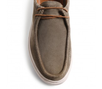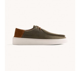 Zapato de tipo náutico para hombre y joven, realizado en piel serraje. Detalle en piel vegana en tono marrón en talonera. Piso bicolor. Cierre de cordón elástico que facilita su calce y ajuste perfecto al pie y plantilla muy acolchada y extraíble. Es un zapato de gran ligereza. Fabricado por la marca Refresh.