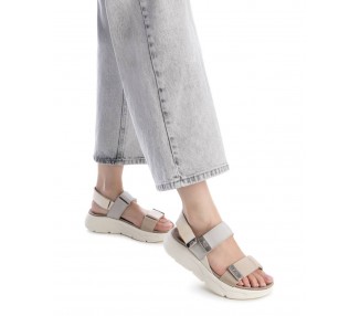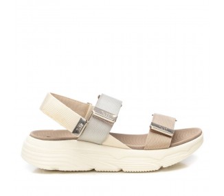 Sandalia de mujer y joven de la marca Xti. Fabricada en material textil-sintético. Modelo de doble pala con cierre de velcro adhesivo y detalle metálico. Tambien cuenta con un trecer cierre de velcro en el talón. Suela deportiva y antideslizante. Este modelo ha obtenido el certificado vegano por la organización mundial PETA (Organización de los derechos de los animales).