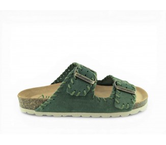 Sandalia Bio para mujer y joven, formada por dos tiras de piel serraje en la pala con cierre de hebillas ajustables para mejor ajuste al pie. Detalle de pespunteado al tono en todo el perímetro. Planta Bio anatómica en piel serraje acolchada de gran confort y transpirable. Podrás usarlas para todos los días y también para casa. Fabricado por la marca Autenti.
