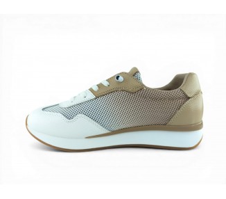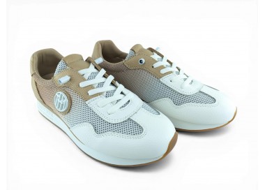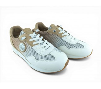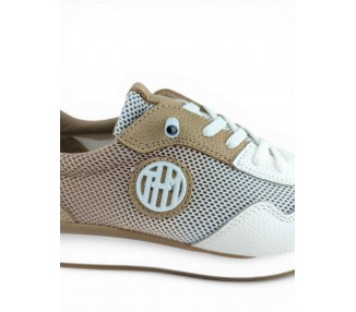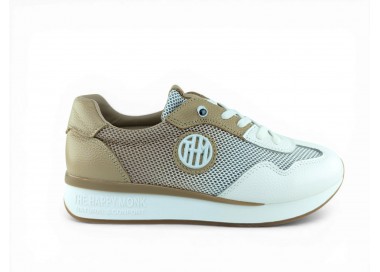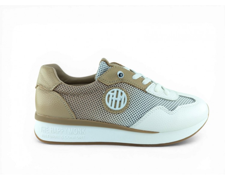 Zapato deportivo con cuña ligera para mujer de la marca The Happy Monk, realizado en material textil entramado combinado con piel. Su forro interior que te aislará del medio. Plantilla extraíble para una mayor higiene y memory confort foam para una mayor comodidad. Suela bicolor de Caucho/EVA y cierre con cordón elástico para conseguir un perfecto ajuste al pie y una comodidad superior. Talonera y puntera reforzada. Modelo muy cómo para tu día a día que no pasa de moda.