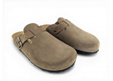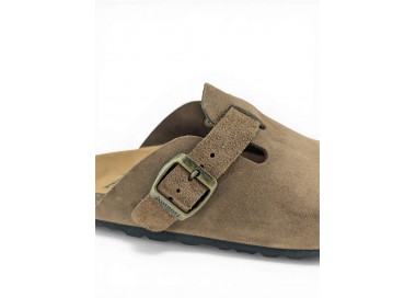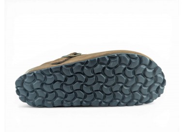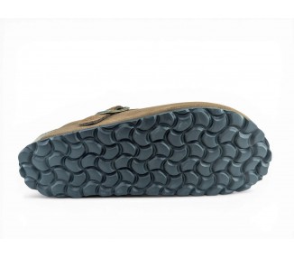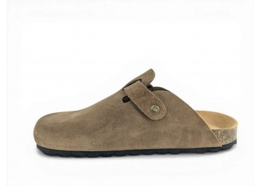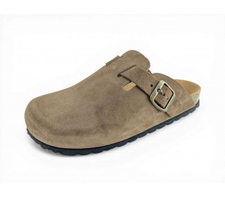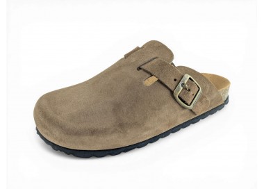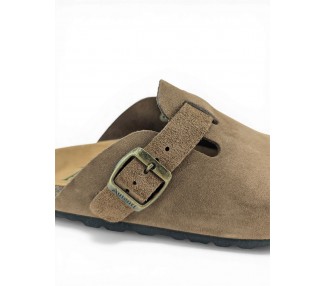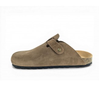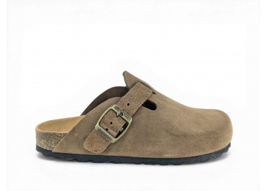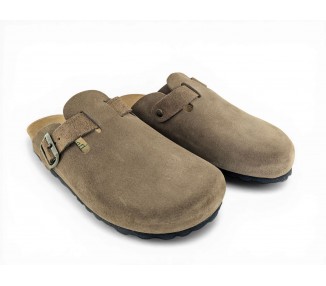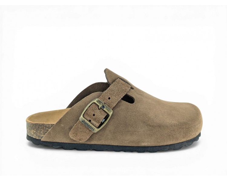 Sandalia Bio tipo zueco para mujer y joven, fabricada en piel serraje de máxima calidad con toda la pala cubierta y cierre de hebilla ajustable en el empeine. Disfruta de comodidad extra con la planta Bio de piel serraje acolchada de gran confort y transpirable. Podrás usarlas todos los días y también para casa. Fabricado por la marca Autenti.
