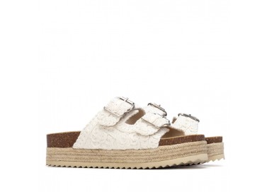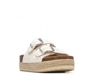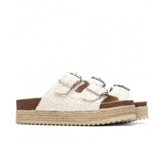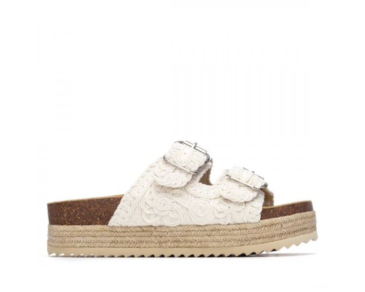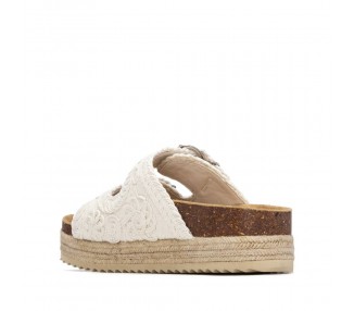 Sandalia Bio para mujer y joven, formada por dos tiras de material que simula la rafia con hebillas para mejor ajuste al pie. Planta Bio anatómica acolchada de gran confort y transpirable. Piso forrado en yute trenzado y suela dentada antideslizante. Podrás usarlas para todos los días y también para casa. Fabricado por la marca Refresh.