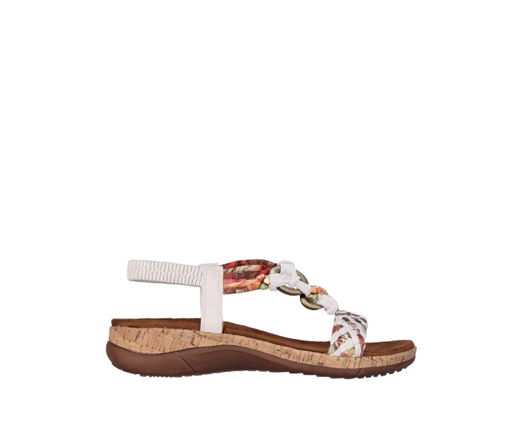 Sandalia maxi confort para mujer con cuña, realizada en piel de primera calidad súper suave, con cierre mediante pulsera con velcro que facilita su calce y ajuste al pie. Talón y puntera abiertos. Detalles calados sobre la pala y suela cosida al corte con detalle de pespunte visto en contraste. Hecho por la marca 48 Hours.