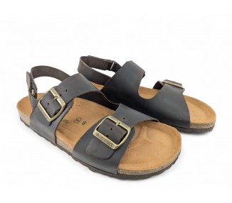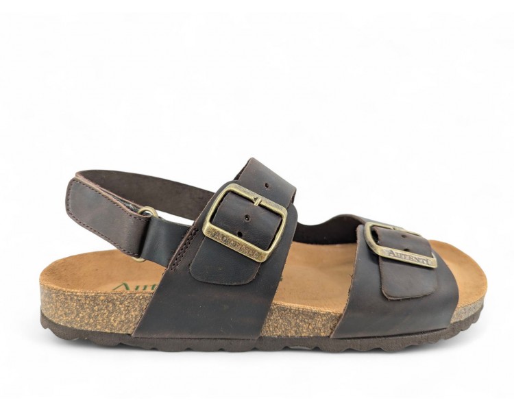 Bio para hombre y joven, realizado en piel engrasada de primera calidad. Doble tira en la pala con hebillas y una tira extra con cierre de velcro en la parte trasera para ajustar mejor el pie. Su planta anatómica será lo mejor que has probado hasta ahora en confort, transpirable y adaptable a tu pie que se mantendrá seco durante todo el día. Fabricado por la marca Autenti.