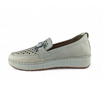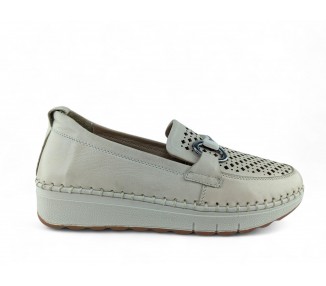 Mocasín comodón de la marca 48 hours para mujer, realizado en piel de primerísima calidad con forro de piel combinado con textil. Adorno de broche en tono plata vieja sobre la pala que está picada Suela cosida al corte con detalle de pespunte visto. Patín de goma flexible y antideslizante. Cuña más que ponible y súper cómoda con 3.5 cm de alto