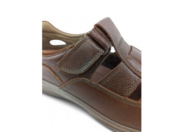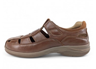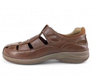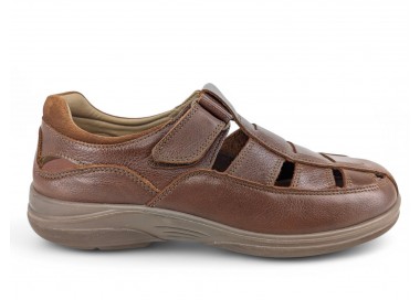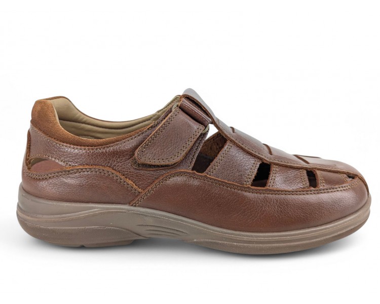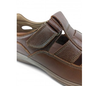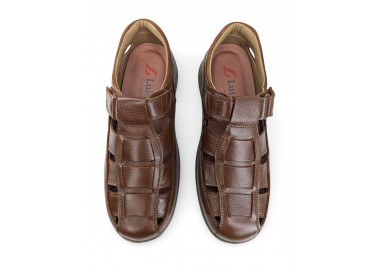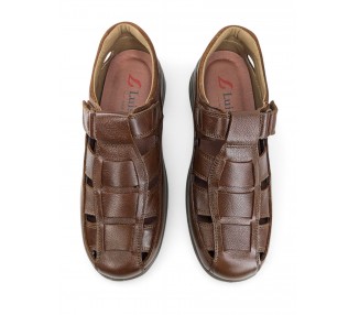 Sandalia cerrada para hombre, formada por tiras de piel lisa que nacen de los costados y terminan en el centro de la pala entrelazándose. Plantilla muy confortable y extraíble con cierre velcro lateral para facilitar el calce del pie. Hecho por la marca Luisetti.