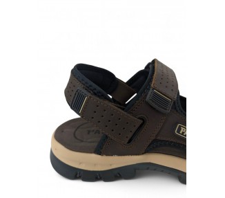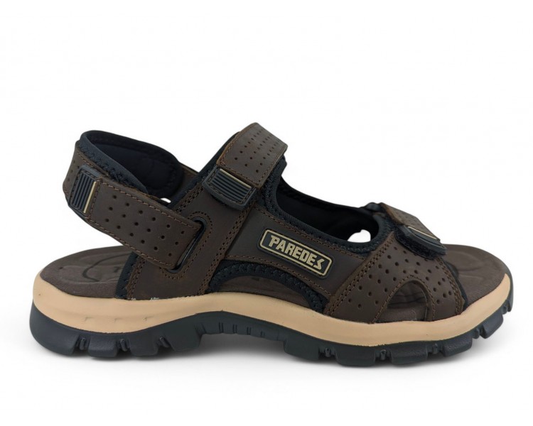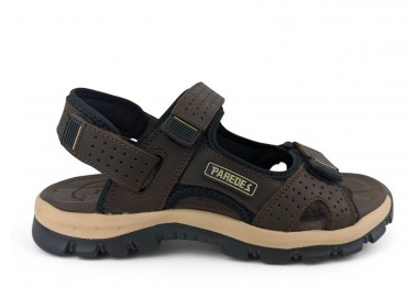 Sandalia de hombre y joven, realizada en piel con costuras acentuadas, cierres de velcro lateral y además, podemos quitarle la pieza talonera para llevarla como una chancla. Tiene el forro textil y planta anatómica íntegramente técnica que en días de mucho calor transpira más y te aporta una sensación de frescor inigualable. Fabricado por la marca Paredes.