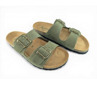 Sandalia Bio para hombre y joven, formada por dos tiras de piel serraje en la pala con cierre de hebillas para mejor ajuste al pie. Planta Bio anatómica en piel serraje acolchada de gran confort y transpirable. Podrás usarlas para todos los días y también para casa. Fabricado por la marca Autenti.