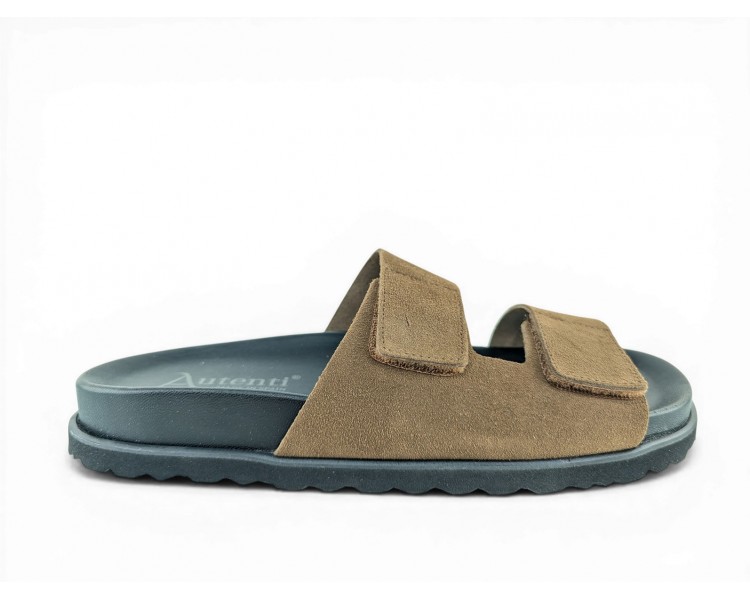 Sandalia Bio para hombre y joven, formada por dos tiras de piel serraje en la pala con cierre de velcro para mejor ajuste al pie. Planta Bio anatómica en piel acolchada de gran confort y transpirable. Podrás usarlas para todos los días y también para casa. Fabricado por la marca Autenti.
