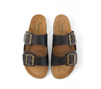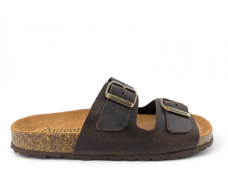 Bio para hombre y joven, realizado en piel engrasada de primera calidad, doble tira en la pala con cierre de hebillas para un mejor ajuste. Su planta de piel serraje acolchada y anatómica será lo mejor que has probado hasta ahora en confort, transpirable y adaptable a tu pie que se mantendrá seco durante todo el día. Fabricado por la marca Autenti..