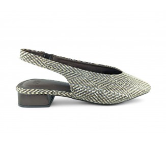 Bailarina destalonada de rafia PU color café-beig totalmente trenzada y con tacón bajo. Forro vegano. Planta muy acolchada y confortable. Piso flexible. Tacón forrado al tono. Su tacón cuadrado le da una gran estabilidad en la pisada y su diseño hace que este modelo pueda combinar con todos los outfits que te imagines. Cierre en el talón con un elástico ajustable. Fabricado por la marca...