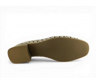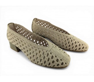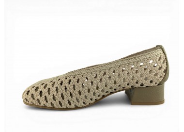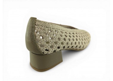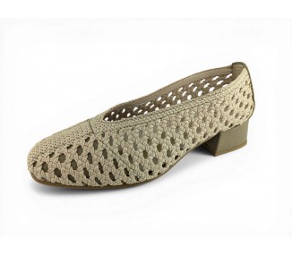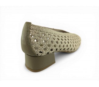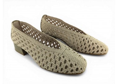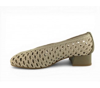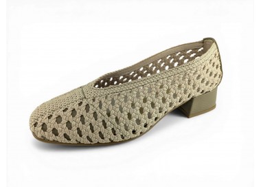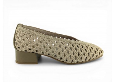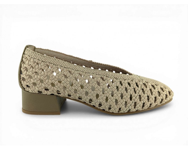 Zapatos tipo salón de tacón medio de Nival en rafia color beig. Diseño elegante con escote en pico, tacón cómodo de 3 cm y suela antideslizante. Tejido adaptable que se ajusta al pie.