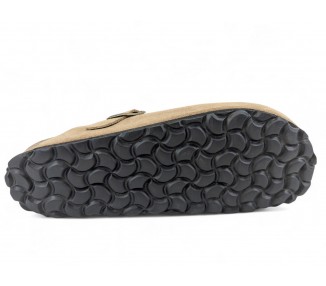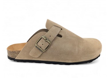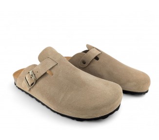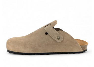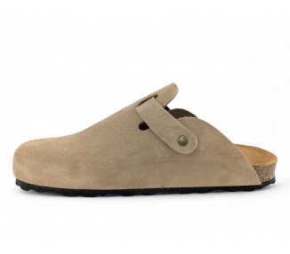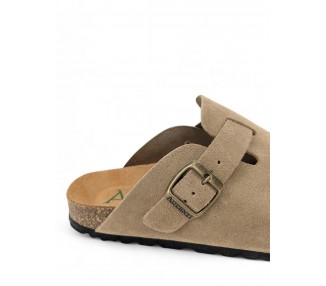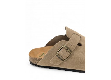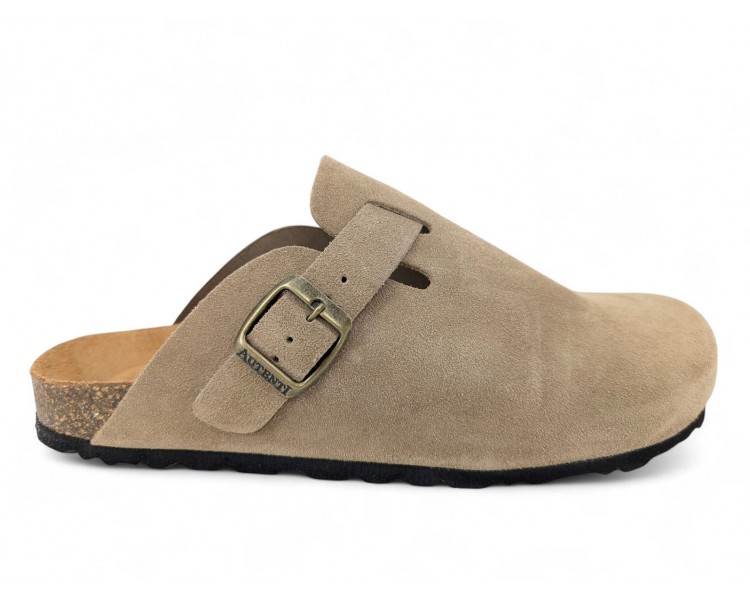 Sandalia Bio tipo zueco para mujer y joven, fabricada en piel serraje de máxima calidad con toda la pala cubierta y cierre de hebilla ajustable en el empeine. Disfruta de comodidad extra con la planta Bio de piel serraje acolchada de gran confort y transpirable. Podrás usarlas todos los días y también para casa. Fabricado por la marca Autenti.