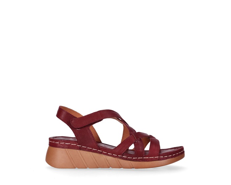 Sandalia para mujer y joven, realizada en piel súper elástica y suave de primera calidad con tiras entrelazadas y planta de gel de gran comodidad. Cierre mediante velcro ajustable para un perfecto calce del pie. Piso de cuña cómoda, de mínimo peso y con patín estriado. Planta cosida al piso. Fabricado por la marca Chika10.