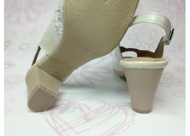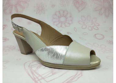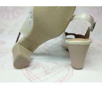 Sandalia de vestir con el talón y la puntera abierta para mujer, fabricado en piel lisa combinada. Forro interior en piel y plantilla acolchada. Cierre de pulsera tobillera con hebilla para un ajuste optimo. Tacón medio-alto con base ancha para una buena estabilidad. Ancho especial.