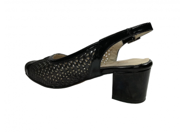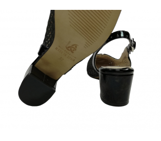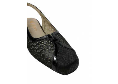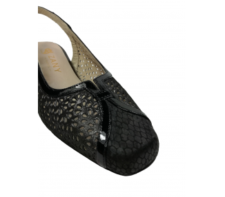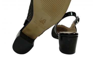 Zapato de vestir con el talón abierto para mujer, fabricado en piel perforada con perforado láser y acabados actuales. Forro interior en piel y plantilla acolchada. Cierre de pulsera tobillera con hebilla para un ajuste optimo. Tacón medio con base ancha para una buena estabilidad. Ancho especial.
