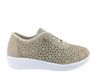 Zapato sport para mujer, realizado en microfibra ecológica con detalles calados al laser. Plantilla acolchada y extraíble para mayor higiene y comodidad. Suela de EVA natural flexible cosida y con gran poder de absorción de impactos. Un modelo cómodo, ligero, fresco y flexible para la temporada de primavera-verano. Fabricado por la marca Doctor Cutillas.